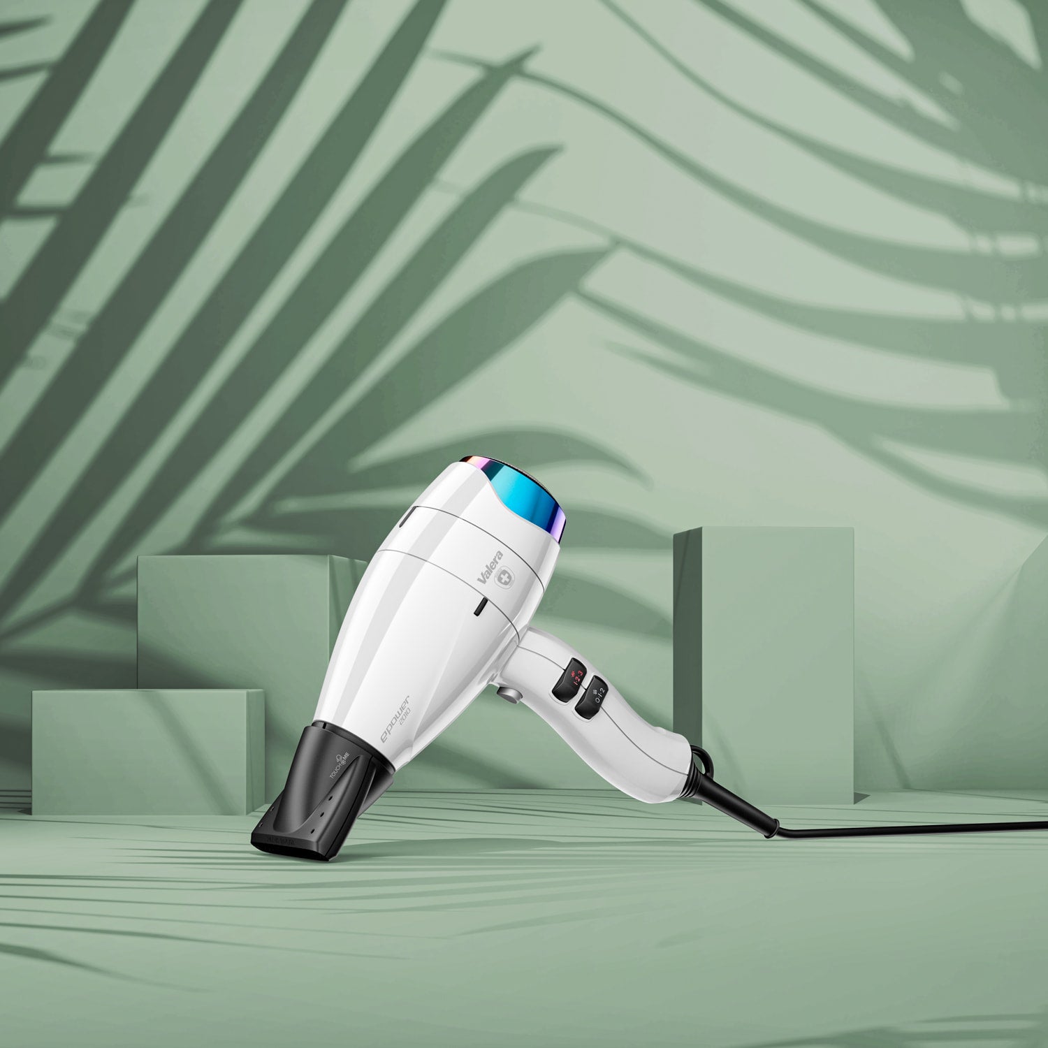 The environmentally friendly and energy-saving ePower2010 eQ hairdryer combines drying performance and salon-like styling results with sustainability. Its excellent performance figures with low energy consumption and extra-long motor life (up to 10,000 hours) convince hairstylists and demanding private users. The minimal weight and practical dimensions allow for convenient use and space-saving storage. ePower 2010 eQ guarantees professional hair styling with responsibility for the environment.
