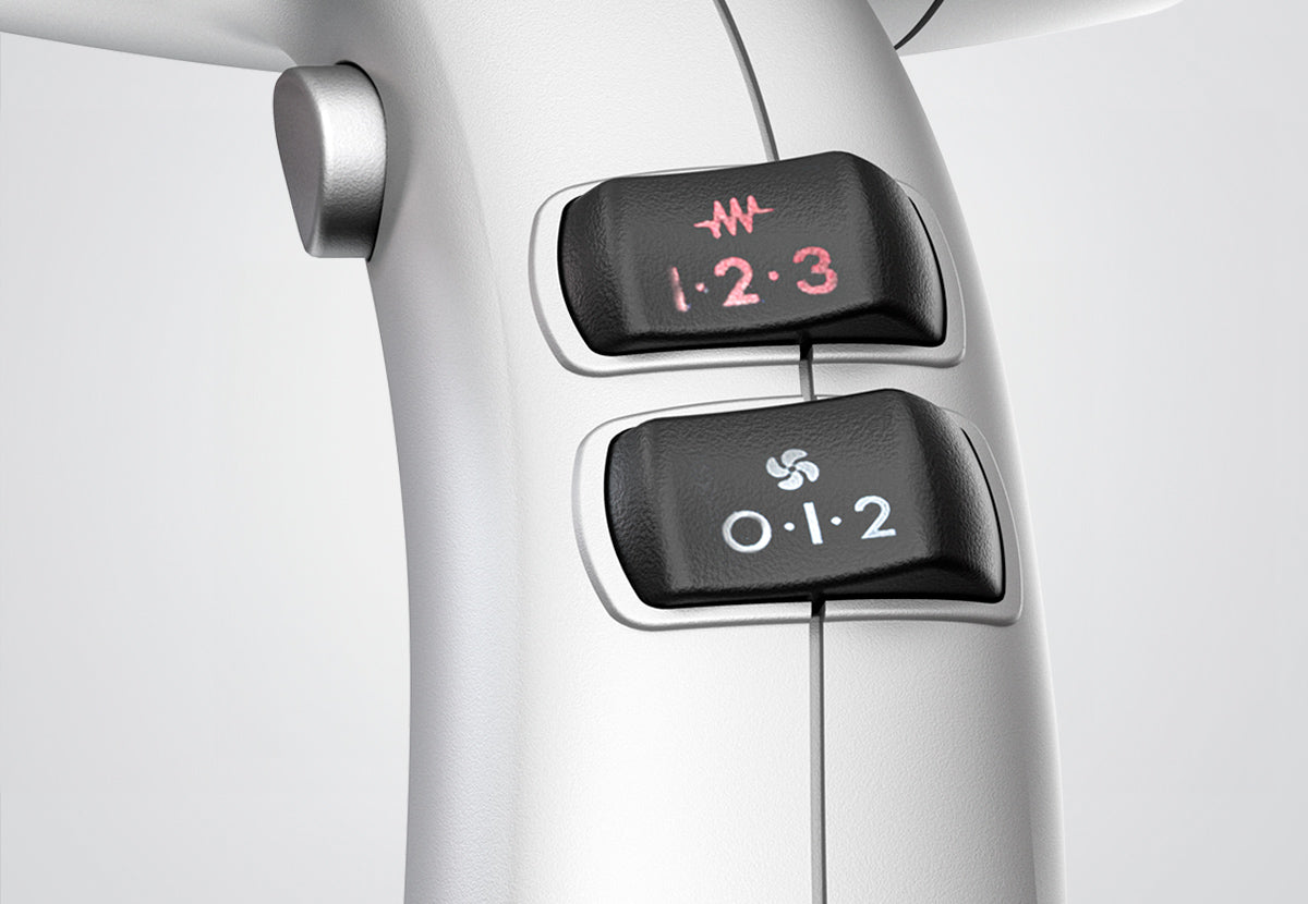 Long-life BLDC-ENDURO-X Select brushless digital motor (up to 10,000 hours, 5 times longer than conventional AC motors). Enables super-fast drying with power up to 2400 W.