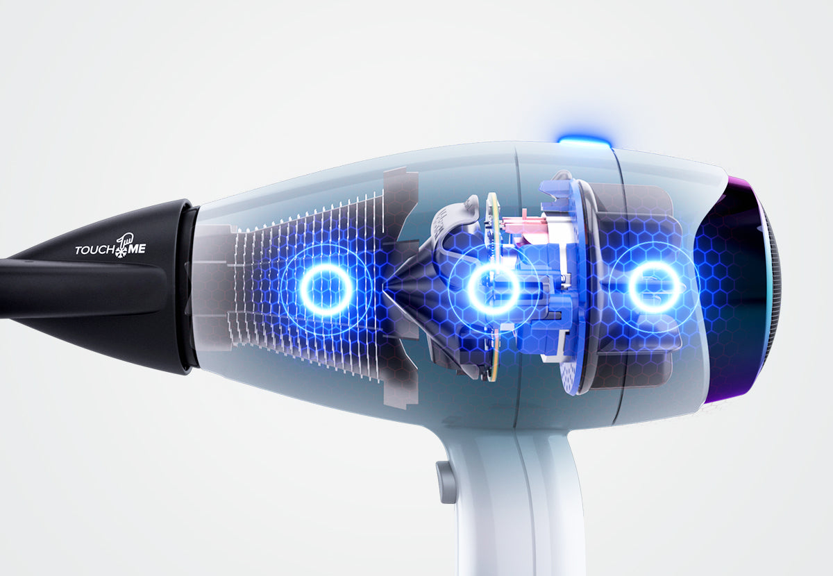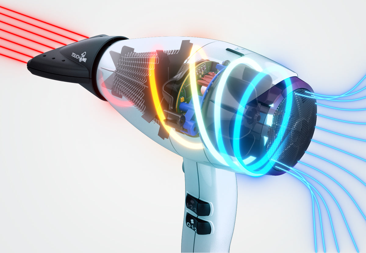 * Compared with hairdryers with DC motor, 25% faster than hairdryers with AC motor.