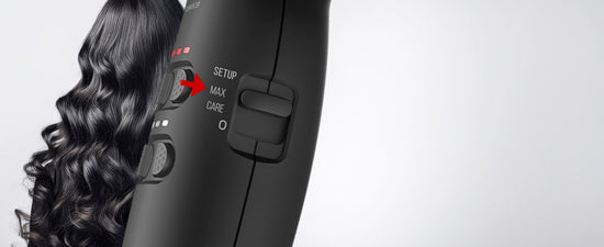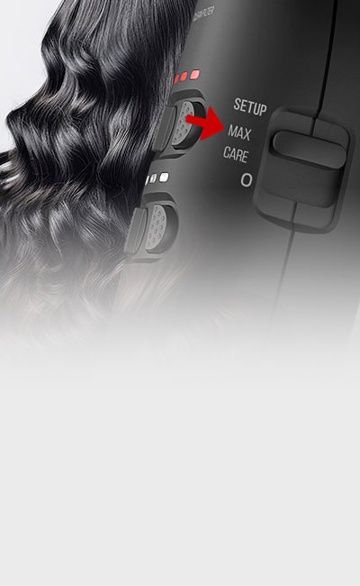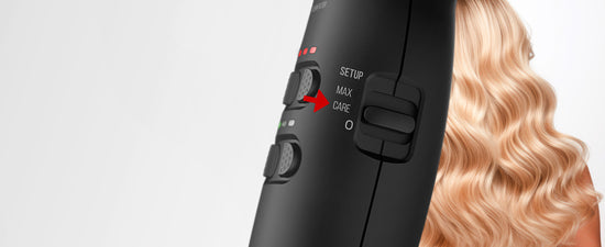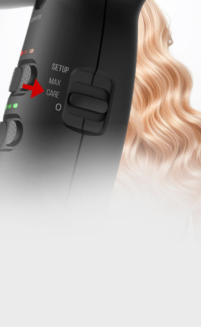 - 2 réglages (Care/Max) offrant 9 combinaisons de température et de flux d'air chacun