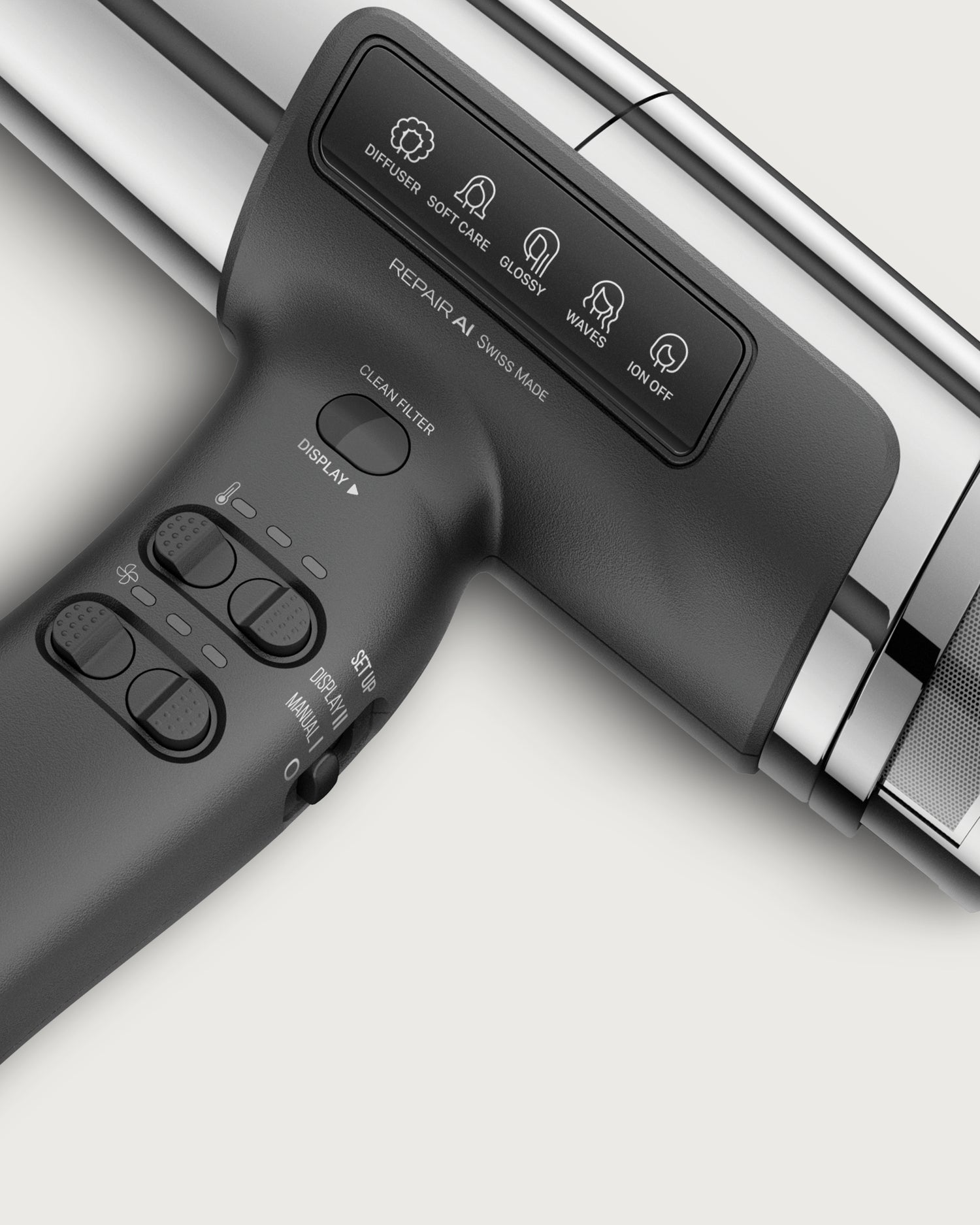 – un asciugacapelli Swiss Made che riflette il suo impegno per la qualità,