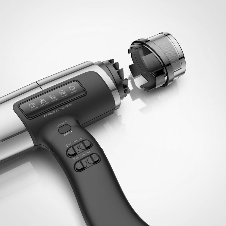 Repair AI combina la precisione e l'innovazione Svizzera, andando incontro alle necessità dei professionisti del settore con delle performance eccellenti. La qualità Swiss-Made garantisce durata e affidabilità, rendendo il nostro asciugacapelli ideale per l'uso in salone e a casa.